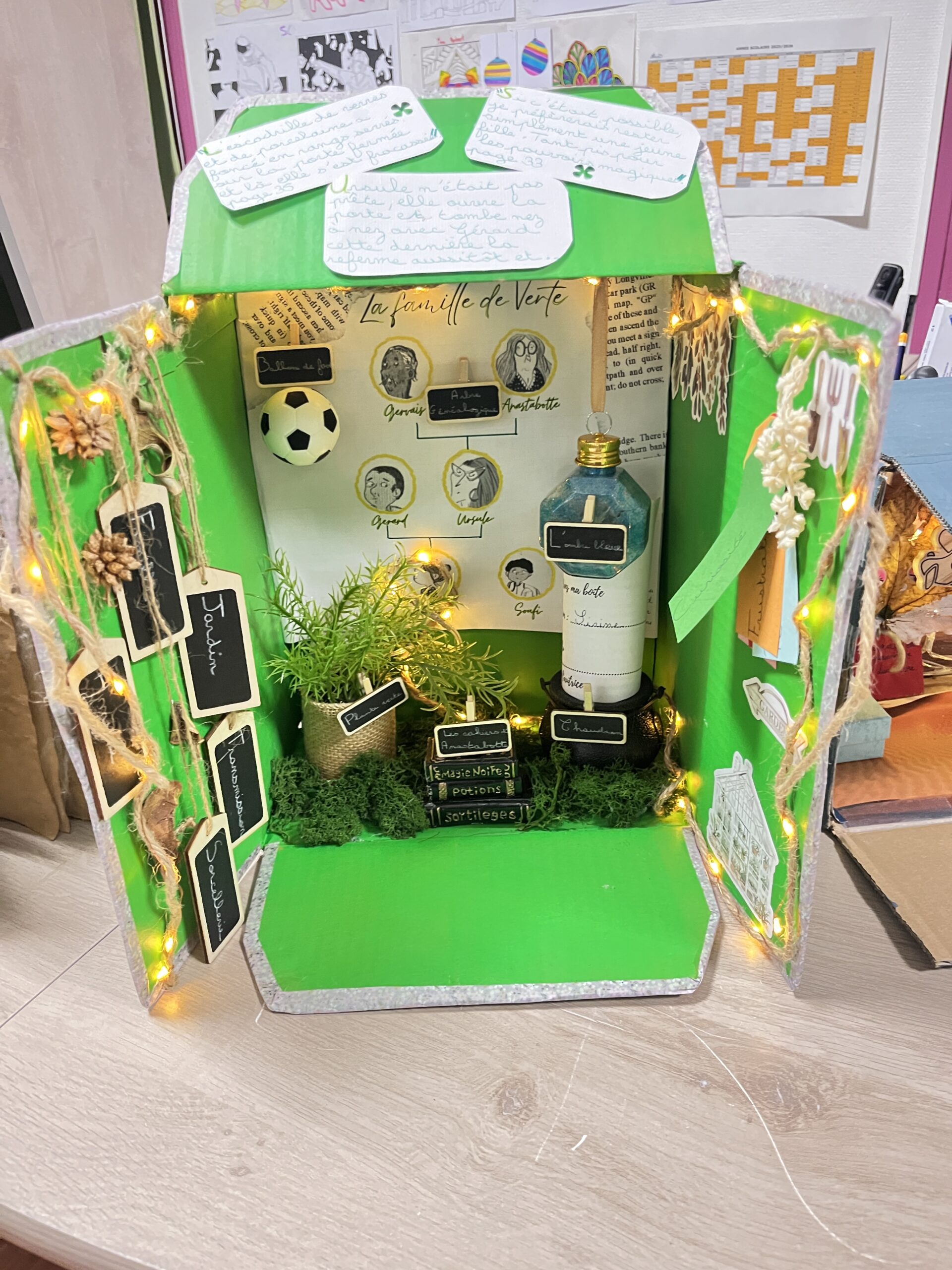 En guise de fiche de lecture, avec des consignes données, ils ont créé une boîte illustrant l’histoire en faisant ressortir les thèmes principaux du livre.