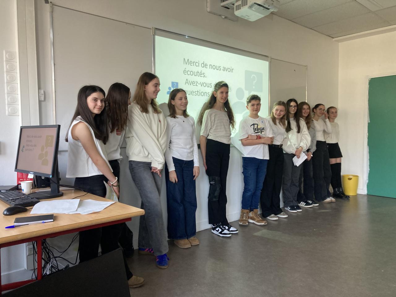 Notre groupe de collégiens a pu faire sa conférence à deux reprises face à des éco-délégués de différents lycées puis devant deux classes du lycée Gabriel Fauré.